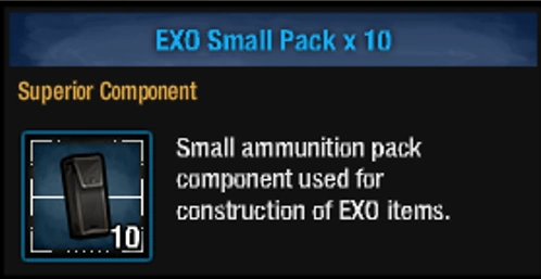 Small ammunition pack component used for construction of EXO items.