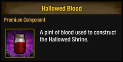 The Hallowed Blood is a component in The Last Stand: Dead Zone. It was only available during the Halloween event in 2014.