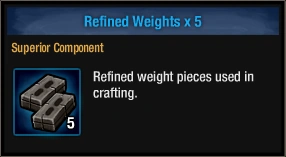 The Refined Weights is a component in The Last Stand: Dead Zone. It was introduced during the 2017 Operation Whiteout update.