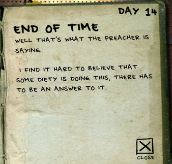 In The Last Stand, Jack kept a daily log of his 20-day ordeal in a diary. This can be accessed by clicking the diary in the lower left corner under the weapons pegboard.