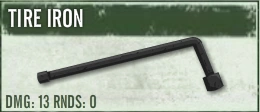 One of the first weapons to be obtained, the Tire Iron is a decent choice for the early sections of the game. However, it should be replaced once better weapons are available, due to its rather mediocre stats. It is also rather heavy, making it inconvenient to carry.